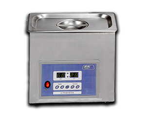 Ультразвуковая очистительная и нагревательная ванна с цифровой регулировкой температуры и времени. Двойной резервуар, полностью изготовленный из нержавеющей стали, снабжен клапаном для откачки жидкости. На панели управления расположены: главный выключатель с подсветкой, кнопка включения/выключения, кнопки регулировки времени и температуры.